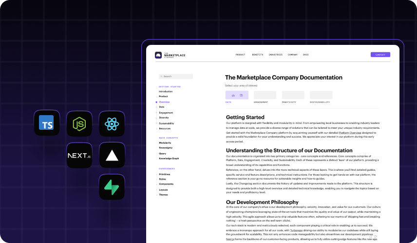 Partner with us to realize your industry visionThe Marketplace Company collaborates with industry pioneers, providing the technological backbone to bring shared visions and goals to life.
