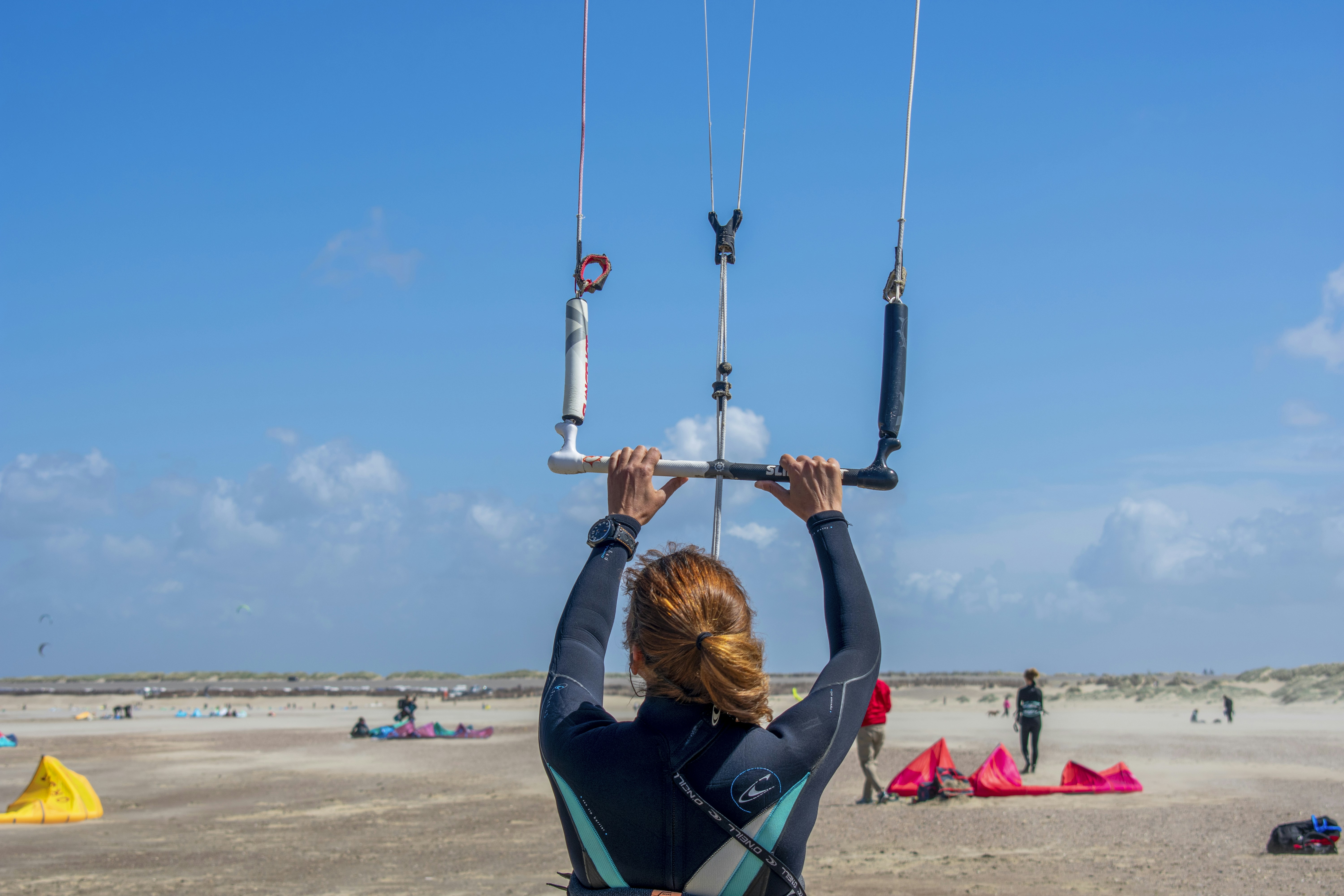 Kite landboarding, also known as land kiteboarding or flyboarding, is an exhilarating land-based sport where participants use a mountain board or landboard and are propelled by a controllable power kite. Riders harness the wind's power to cruise, jump, and perform tricks on various terrains such as beaches or open fields. Kite landboarding combines elements of kite control and board riding.